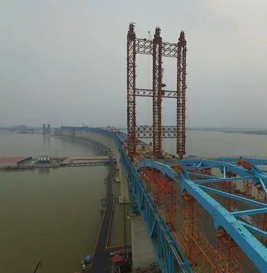 大橋全長11072米,采用主跨1092米的鋼桁梁斜拉橋結(jié)構(gòu),是目前世界上同類型公鐵兩用斜拉橋跨度之最,也是全球首座跨度超過千米的公鐵兩用大橋。目前大橋正在建設(shè)中,工程總投資150億元,于2014年正式開工建設(shè),預(yù)計2019年完工。