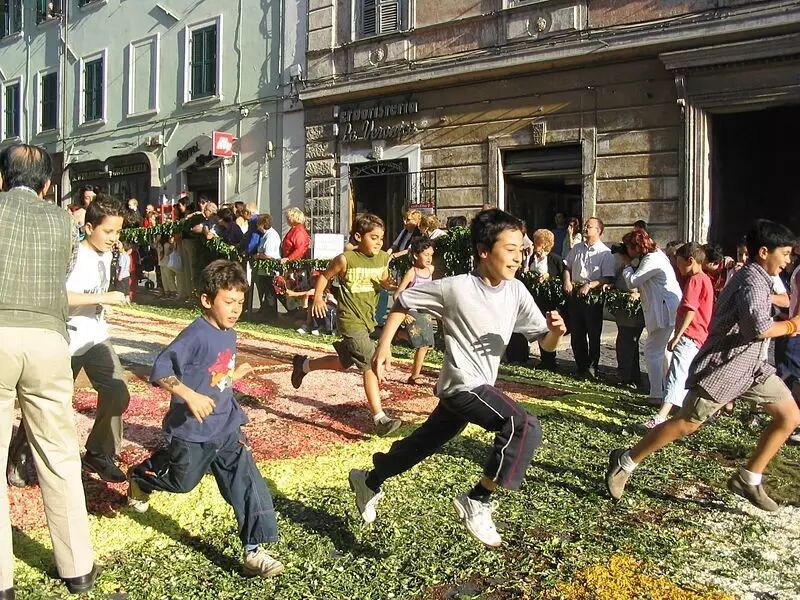 真扎諾的花節(jié)從一個受歡迎的宗教節(jié)日演變成了集合藝術和文化國際節(jié)日,每年吸引來自意大利和海外的游客專程到此參觀。花毯由十幾個彩色花板組成,占地約2000平方米,使用大約50萬朵花和種子。