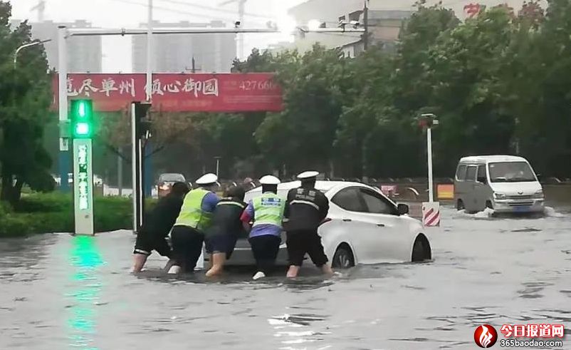 ▲ 7月28日17時12分許,菏澤交警支隊單縣大隊民警巡邏時,發(fā)現(xiàn)有一輛白色小轎車被困在積水中,由于積水較深導致車輛熄火無法行駛,駕駛人被困車內(nèi)。民警發(fā)現(xiàn)后立即上前,與同事冒雨將車輛推出積水路段,將駕駛人順利救出。